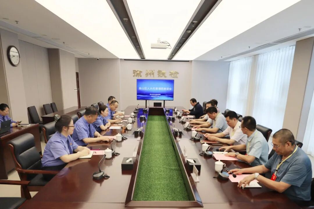 近日,徐州市泉山区总工会主席孙吉明、区人大常委会环资城建工委主任樊木晓、区委政法委常务副书记郑刚等区人大代表一行到徐州铁路运输检察院开展调研并召开座谈会。徐州铁检院全体领导班子成员参加。