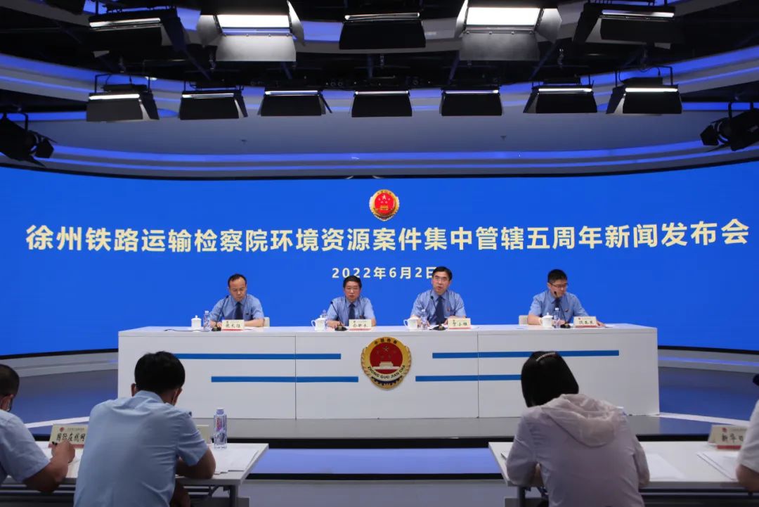 6月2日,在第51个“世界环境日”来临前夕,徐州铁路运输检察院(以下简称“徐州铁检院”)举行“绿水青山检察蓝——环境资源案件集中管辖五周年新闻发布会”,向社会发布五个典型案例。省检察院党组成员、副检察长俞昕水出席发布会,并通报江苏检察机关环境资源案件集中管辖工作情况。