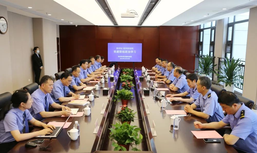 6月20日下午,徐州铁路运输检察院(以下简称徐州铁检院)与中国铁路上海局集团有限公司徐州站(以下简称徐州站)开展检企党建联组政治学习,并一起到徐州市税务局参观交流。两单位领导班子成员等参加活动。